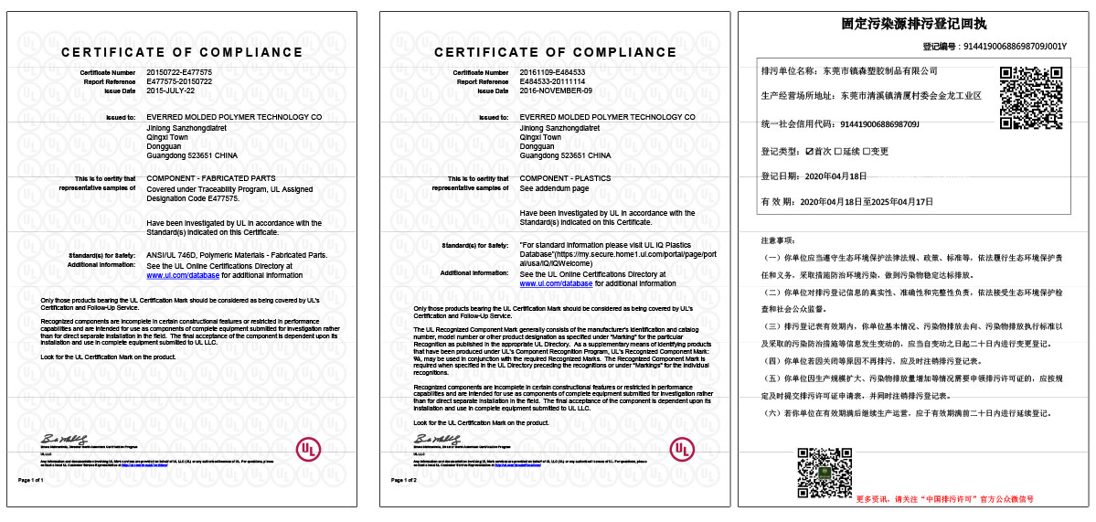 | 6 | PU發泡成型過程UL證書 | E477575 |